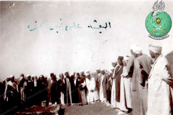 وهذه الصورة التقطت لهم وهم عند قبر سيدنا حمزة بن عبدالمطلب أثناء هذه الرحلة ويرى في الصورة أيضا الإمام حسن البنا وسط الجموع