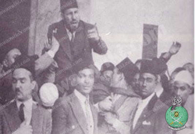 نعم أذكر في ذلك الوقت ، وفي هذا المكان كيف كان حسن البنا يتلقي مع الجميع ليعمل الجميع في سبيل المباديء العالية ، والأهداف السامية ، لا في سبيل الأشخاص ولا الأفراد ولا الدنيا .. ثم قال في نهاية كلمته واشهد لله أني أعمل – إن كنت أعمل – لتنفيذ هذه المباديء وأفني فيها وأجاهد في سبيلها "