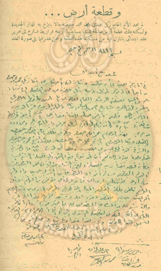 وتصل التضحية مداها؛ فلم يجد الأخ الحاج زكي محمد محمد جعيصة من طنطا مالا يتبرع به للدار الجديدة، ولكنه يملك قطعة أرض صالحة للبناء، مساحتها أربعة قراريط، فسارع إلى تحرير عقد ابتدائى يتنازل فيه عن ملكية هذه القطعة للإخوان المسلمين للتصرف فيها لشراء دارهم الجديدة.