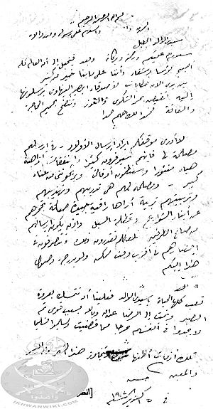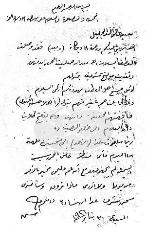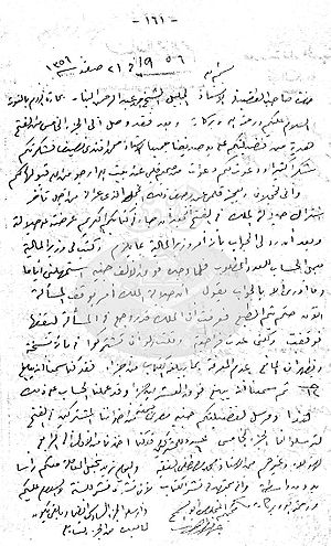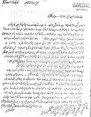 2-الإسماعيلية تركتها بخير وقد تم بينى وبين المخالفين الملاعين صلح تهدئه فقط يجعلنا نتحاجز ولا تصل وقد رأيت أن ذلك خيرا للطرفين مع الاحتراس اللازم ومن طيه إعلان بملخص هذا الصلح.