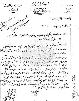 4-ثم كتبت اليكم بشىء ما بخصوص " حسن أحمد موسى" ويحسن هنا أن اذكر لكم على سبيل العلم شيئا عنه فلعلكم فى شوق إليه, بعد حضورى علمت ان السبب فى تأخرهم نقاش ومناقشة بينهم وبين الحاج حسن البيك فى موضوعات تجارية وهم فى كل الأدوار منتصرون فصرفهم هذا التنافس عن تتميم الأمر ولكن الرجل وابنه أبوا قبول المبلغ المودع بتاتا فصارحهم بأني لا يمكنى الموافقة على هذا الأمر إذا نقلت فكان جوابهم ليكن هذا المبلغ مودعا بخزينة الجمعية حتى يظهر أمر النقل وقد كان ولا يزال المبلغ مودعا باسمهم إلى الآن والشاب يرجونى دائما ألا أكون سببا فى انهيار آماله وأنا مسروران ولا أدخر وسعا فى راحتهما ولعلهما يكتبان اليكم بذلك وسلام الله عليكم ورحمته وبركاته.