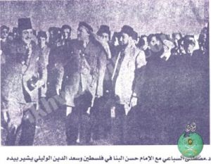 الدكتور مصطفي السباعي مع الإمام حسن البنا في فلسطين وسعد الدين الوليلي يشير بيده