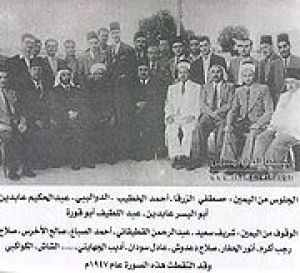الجلوس من اليمين مصطفي الزرقا أحمد الخطيب الدواليبي عبدالحكيم عابدين وأبو اليسر عابدين