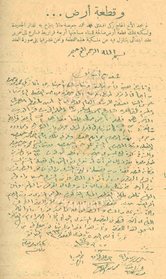 وتصل التضحية مداها؛ فلم يجد الأخ الحاج زكي محمد محمد جعيصة أفندى من طنطا مالا يتبرع به للدار الجديدة، ولكنه يملك قطعة أرض صالحة للبناء، مساحتها أربعة قراريط، فسارع إلى تحرير عقد ابتدائى يتنازل فيه عن ملكية هذه القطعة للإخوان المسلمين للتصرف فيها لشراء دارهم الجديدة.