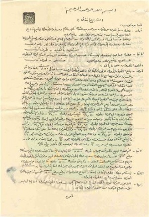 فإنكم تعلمون أنه كان من أسعد أمانينا أن يكون للمركز العام للإخوان المسلمين دار مملوكة بالقاهرة؛ لما فى ذلك من تركيز الفكرة وتثبيت دعائم الدعوة. وقد أراد الله تبارك وتعالى أن يحقق هذا الأمل، فأتاح لنا فرصة طيبة وجود دار فخمة فسيحة مناسبة بميدان الحلمية نفسه مقابل دار المركز العام الحالية تمامًا، وقد وجدت أن من التفريط والتقصير تفويت هذه الفرصة وعدم الانتفاع بها، فأقدمت على شراء هذه الدار، وترون مع هذه صورة عقد الشراء الابتدائى.