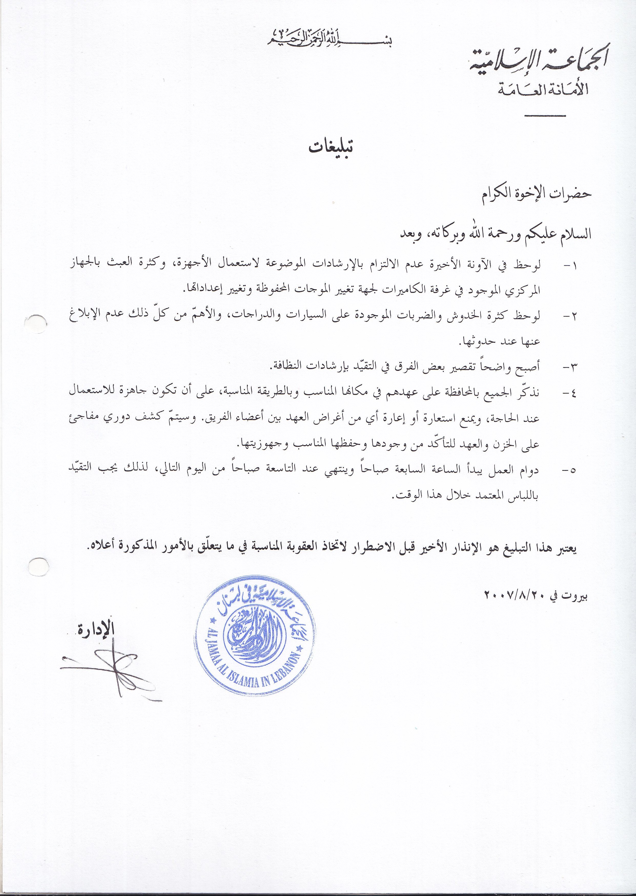 ملف:وثائق الشيخ فيصل مولوي الأمين العام الساق للجماعة الإسلامية بلبنان (6).jpg